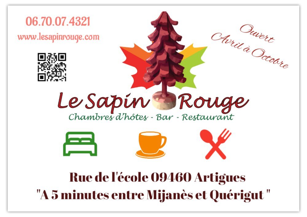 Le sapin rouge Restaurant / Bar, Chambres d'hôtes, Gîte, soirée étape, demi pension à Artigues 09 Ariège, Donezan canton de Quérigut - 2km de Mijanès